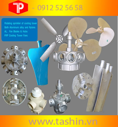 4. Cánh quạt tháp giải nhiệt nước Cả quạt hướng trục (quạt đẩy) và quạt ly tâm đều được sử dụng trong tháp. Thông thường quạt đẩy được sử dụng trong thông gió và cả quạt ly tâm và quạt đẩy đều được sử dụng để thông gió cưỡng bức trong tháp. Tùy theo kích thước, có thể sử dụng quạt đẩy cố định hay độ nghiêng cánh biến đổi. Quạt với cánh nghiêng điều chỉnh không tự động được sử dụng trong dải kW rộng vì quạt có thể được điều chỉnh để luân chuyển lưu lượng khí mong muốn ở mức tiêu thụ năng lượng thấp nhất. Cánh nghiêng biến đổi tự động có thể thay đổi lưu lượng khí theo điều kiện tải thay đổi. Cánh quạt tháp giải nhiệt là loại linh kiện cũng hay phải thay thế, và được làm bằng nhôm hoặc nhựa tùy vào kích thước cánh quạt cũng như kích thước của tháp giải nhiệt.Cánh quạt hợp kim nhôm – Cánh quạt nhựa của tháp giải nhiệt