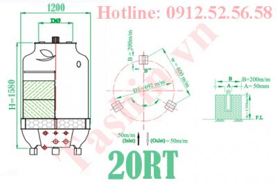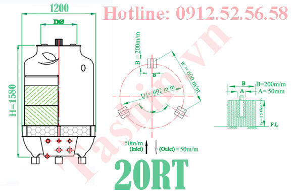 + Thông số kỹ thuật tháp giải nhiệt 20RT: