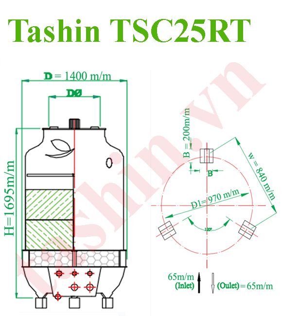 Tháp giải nhiệt Tashin 25RT có thông số kỹ thuật như sau: